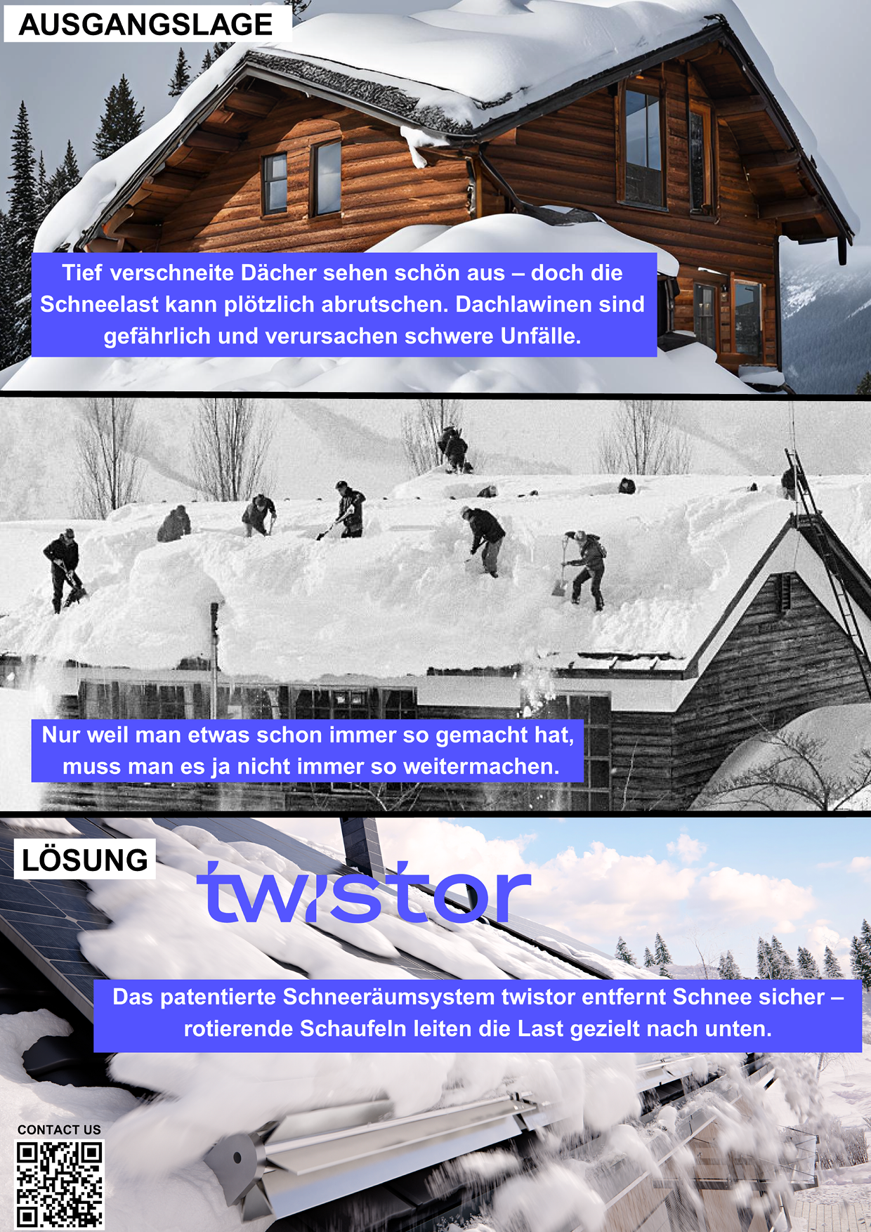 13C: twistor - die schlaue Lösung für dein schneefreies Dach. Für maximalen Ertrag von Solaranlagen. Für mehr Sicherheit.